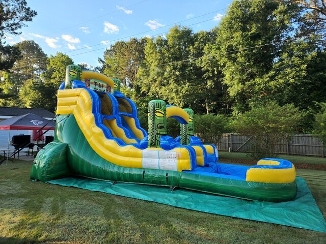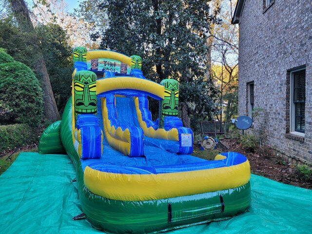 Reserve the 17' Tiki Sling Shot Water Slide today and turn your event into a backyard luau everyone will remember!