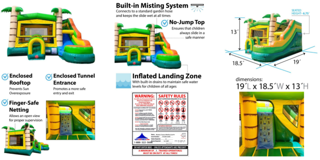 Clean, safe, and ready to party, the Tropical Wild Bounce & Water Slide Combo is an easy way to turn any event into a tropical adventure. Reserve today and let the fun make a splash.